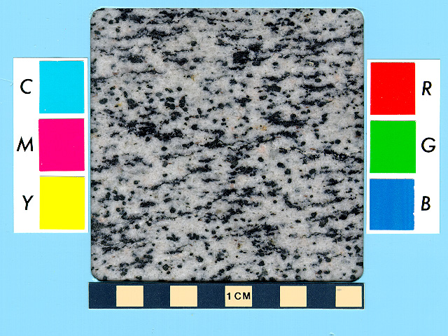 (a) mottled white, light gray and dark green, medium-grained. PHOTO: sample 1